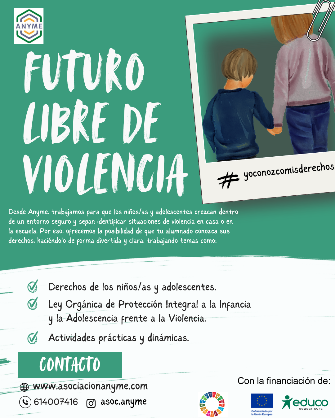 Comenzamos con los talleres y formaciones en centros educativos y entidades que trabajan con la infancia, para dar a conocer los derechos de los niños, niñas y adolescentes. Porque queremos un Futuro Libre de Violencia. Cofinanciado por la Unión Europea y @educo_ong Si quieres que vayamos a tu IES, centro educativo o entidad, no dudes en ponerte en contacto con nosotras.