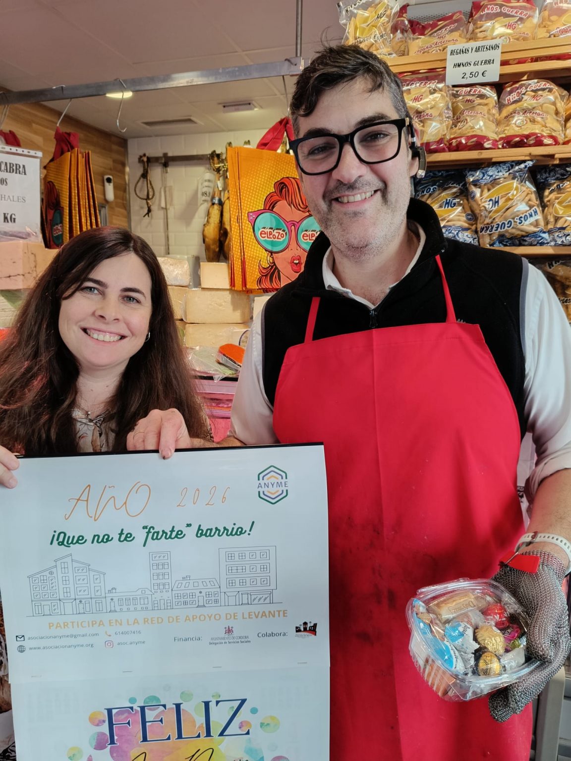 Hacemos entrega a uno de los comercios más entregados del barrio de Levante, Casa Curro, del calendario para que no le «farte» barrio y siga atendiendo a sus clientes/as de la mejor manera posible, con una sonrisa y atendiendo a las personas mayores con paciencia y humildad. Porque las tiendas, hacen barrio.